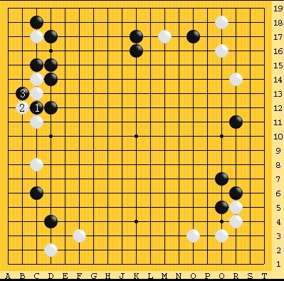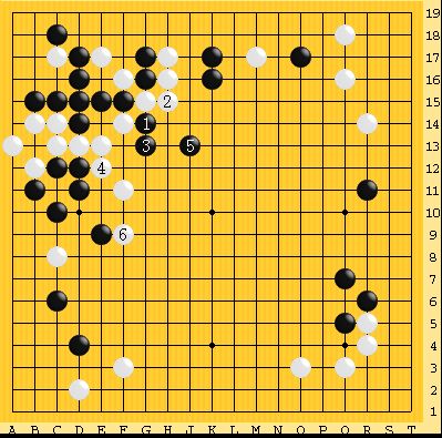 1 から 3 が厳しい手。白は下にツゲば穏やかだったが、勢いで上を取った。
