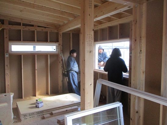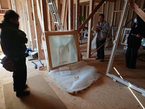 私もたまにはお手伝い。木製トリプルサッシの運搬です。