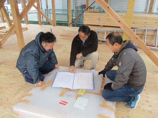 左が棟梁の平野親方。田村工業の唯一の大工さんです。