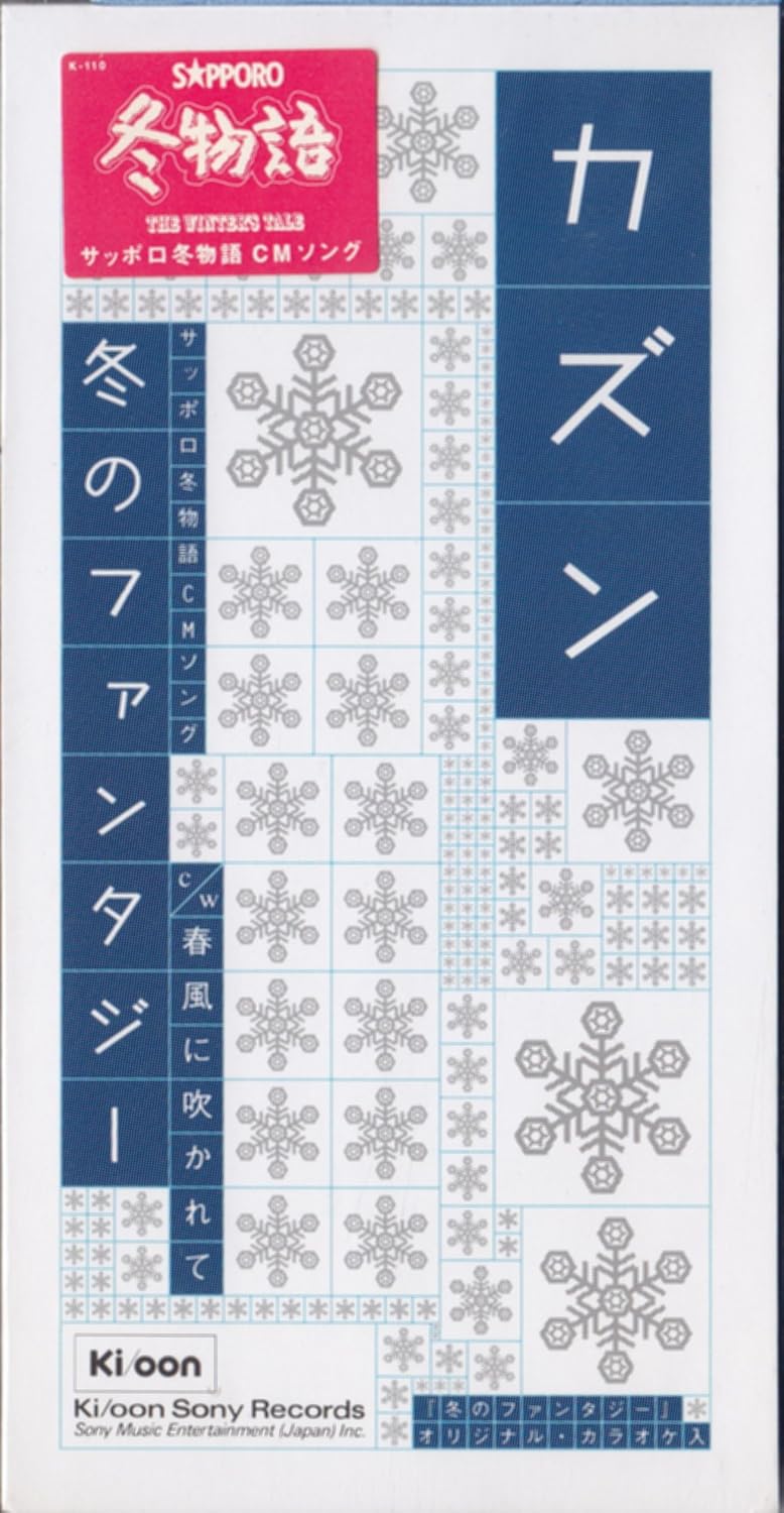 収録曲 1. 冬のファンタジー 2. 春風に吹かれて 3. 冬のファンタジー(オリジナル・カラオケ)1995年リリース作品カズンさんのサードシングルです。いよいよこの曲がピッタリの季節になってきました。ビール(冬物語)のCM曲としてヒットした名曲です。実際、北国に住んでいると曲のようなロマンチックさよりも苦労が勝りますが…。今回あらためて聴いて思ったのは、最近のドラマ、CM曲はほとんど記憶に残らないな…と。