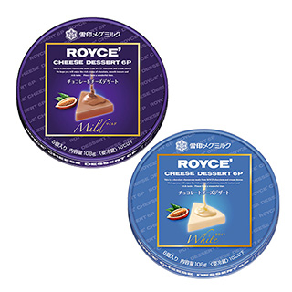 ROYCE'の「チョコレート」と雪印メグミルクの「クリームチーズ」で仕立てた大人のチョコレートチーズデザート。 味はマイルドとホワイトの2種類。 ●(株)ロイズコンフェクトと雪印メグミルク(株)の共同企画商品 ●ROYCE'のチョコレートを使用 ●やわらかい口どけ、華やかなチョコレートの香り、クリームチーズのコクが特長 ●ケーキのように6個に分かれた個包装タイプ ●「マイルド」芳醇でナッティーなカカオ味、「ホワイト」まったりとしたカカオバターとミルクの味 確かに、「他にはないおいしいチョコレートチーズデザートに仕上がってます。 チーズデザートの新境地。 雪印にロイズの方がちょっと勝ってると感じました。 ウイスキー、ブランデーのつまみに良さそうです。