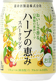 養命酒が作った「ハーブの恵み」は、ココロもカラダもよろこぶ、微炭酸タイプのハーブのお酒。 厳選した13種類の東洋ハーブを配合。 中央アルプス・駒ヶ根高原の口当たりやわらかな水で仕込み、香料・保存料・着色料を使わず、特許技術の製法によりハーブ本来のおいしさを引出した。