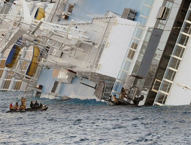 イタリア中部ジリオ島沖500mで大型クルーズ船「コスタ・コンコルディア号」が2012年1月13日午後8時ごろ、座礁、浸水、転覆。