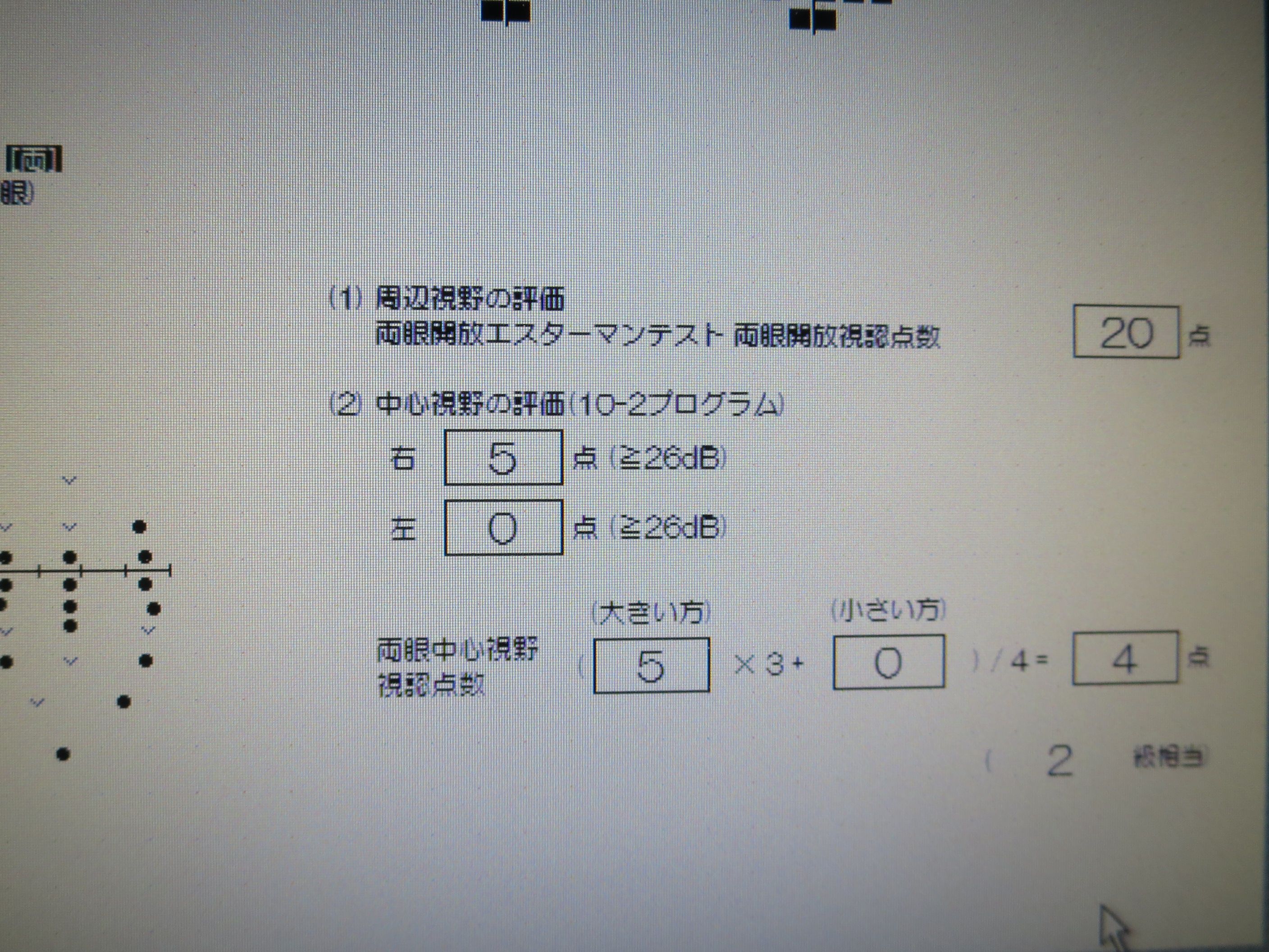 ​ さて前回の日記で、  視覚障害者の認定基準が全面的に改訂  されたというニュースを取り上げたのですが、当院ではこの新しい変化に即時対応して、このAP-7000で検査後に等級を自動判定できるバージョンアッププログラムを導入しました。​