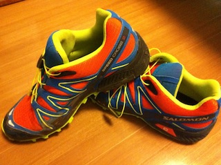 書いてるのは7月ですが、4月に購入したトレランシューズの内容です。春になって外も寒くなくなってきました。山を走るのも気持ちいい季節なのでトレランシューズを購入。本格的にはやらないからごっついのは嫌なので、軽くてデザインのいいものないかなと探していたらありました。2012.4購入■salomon speedcross3 27.5cm トレランシューズではかなり軽い重さ300グラム 定価13545円がなぜか40%offで9000円以下雨の日のタウンユースにもいいかなとgore-texのにしようかと思いましたが、走る時は、さすがにゴアでもムレてしまうのでこちらにしました。すぐに乾くのもgood。底面もギザギザで土をとらえてくれます。靴ヒモがワンタッチでゆるめられるので、これはすごい便利だー。普段履きにも最適ですね。とりあえずの一足としては問題なしです。★salomon speedcrossを楽天でさがす★amazoneの説明から引用レース仕様の軽量・スピードモデルがフルモデルチェンジ。新開発のロープロファイルミッドソールによって、前作より安定性が向上しました。アッパーは通気性の良いメッシュ素材を多用し、衝撃を受けやすいソール周りはラバーで包みしっかりガードしています。ストラップを引っ張るだけで簡単に紐を締められる“クイックレースシステム"採用。