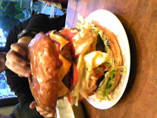 特撮?遠近法?と疑ってしまいますが、ほんとの写真。 超巨大ハンバーガー。 食べてきました。 つくばで有名なお店です。 味も本格的でおいしいですよー。 ただ、10人は必要ですね(^_^;)