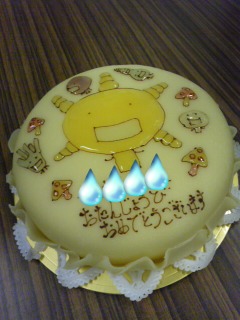 お世話になってる方への誕生日ケーキをみんなでプレゼント。こういうのも作ってくれるんですねー。食べるのがもったいなかたです。