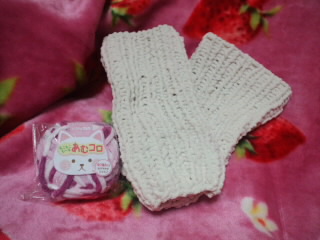 ダイソーで買ったモール毛糸で編みました。15号棒針、一目ゴム編み、25目作り目して45段。最後は伸び縮みするように、ゴム編み止めにしました。 両脇を閉じて出来上がり。 夫用。ふくらはぎが太いので、25段目と30段目で両脇で一目ずつ、計4目増やしました。 なんだか使っているうちに、伸びてきそうだと思ったけど、まいっか。 もこもこもーるあむコロ、ミルクキャラメル色、4玉使いました。