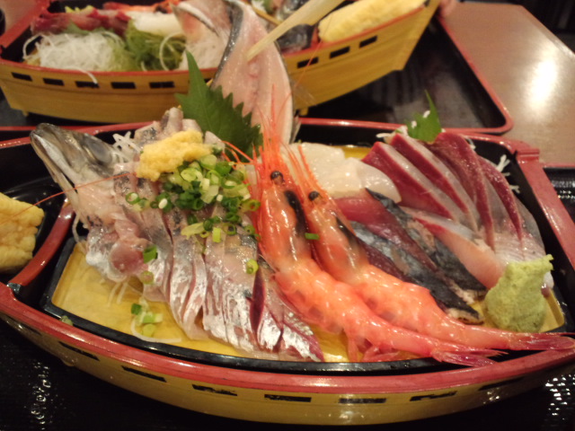 ジェラートは、ピスタチオとアプリコット、ジンジャー。 フナモリ定食。甘エビ、いか、アジ、はまち、カツオ、玉子焼き。 人工池で噴水をライトアップ。噴水の後ろから映像が映し出しされて。キレイだった。