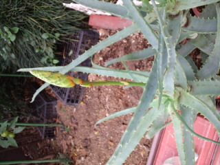 アロエにつぼみのようなのがついています。花が咲くのかどうか、ドキドキです。 鉢の底から根が出ている状態でつぼみのようなのが出てきたので、良いことなのか悪い兆候なのか心配になり、少し大きな鉢に植え替えました。 元気になりますように。 ビオラも花がつき始めました。