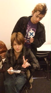 日高っす。今日も無事、学園祭終了っす!遊びに来てくれた人は、ホントありがとねー!衣装もセットリストもスペシャルで、がっつりやってみましたよー!なんかさ、MCとかほぼ楽屋くらいのノリの、ラフな感じで、楽しくゆるーくやらせていただきましたよ。あのノリは学園祭ならではだろーね!そんな中、今日は学園祭終わったら、秀太と2人で一路千葉へ!bay fmさんにお邪魔してきました!楽屋でゲーム中の秀太。それでもがっつりピースは忘れません。本番もMCのお二人と楽しくお話してきましたよ!こちらも見に来てくれた人達ありがとう!!せっかくの千葉なのでこのまま実家にかえ…る訳もなく東京に帰ってきたよ!連休は仕事して遊んで、体力使いまくったけど、風邪も治ったのでさらに遊んでやろうと思います。2008年もあと少し!頑張るぞう!