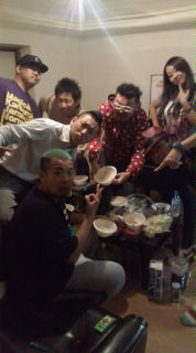 日高っす!昨日は実は日本語ラップ好きにはたまらない一夜だったんすよ。深夜、昔YOU THE ROCK★さんが伝説のHIPHOPプログラムを放送してた時間帯に、サイプレス上野さんという新世代のスターMCが日本語ラップしか流れないラジオプログラムを放送してたんすねー。つーわけで、昨日は「皆でそのラジオを聞こうの会」が発足されていました。一番手前がそのサイプレス上野さん。他も写ってる人皆、次代を担うHIPHOPスターなのです。普通に鍋つついたり、ビール呑んだり、楽しかったよー!最後のフリースタイルでは何かぐっときて、涙出そうだったよ。今このブログ見てる人でその放送を聞いたって人は…さすがにいないかなぁ。いたら友達になってください笑。HIPHOPなんて、けして敷居の高いもんじゃ無いから、なんとなくでも興味持ってくれる人が一人でもいたら嬉しいス!!では、失礼!!
