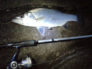 スケジュールの合間をぬってだめ元での出撃。予報は波なし・晴天、西風爆風。まあ、温泉目当てでもありますので師匠様に出撃を連絡して出発。ありがたいことに貴重な情報をいただき参考に。んで、最初のポイントに到着。波なし・・・。パス。そして、次のポイントへ。爆風・・・・。呼吸困難・・・・無理。移動。別のポイントに入り何とか出来そう。でも爆風が・・・。風の途切れ目でのキャスト。数投して爆風が・・・。風厚を小さくするためシャごんで(かがんで)やってますが吹き飛ばされそう・・・!ラインが流され回収せねば。あれ? 掛った。鰓荒い連発。爆風でタモを使える状況ではなく浅い場所へ誘導。何とかリーダーをつかみヅリ揚げ成功。50位の食べごろさいず。んで、再開。しばらく爆風とも戦いながらキャスト・キャストコン! 良しっシャ!と合わせると遠くで素晴らしいジャンプ&鰓荒い。何度かこれを繰り返され見とれて竿を立ててしまい。痛恨のバラシ。60から70位だったのに・・・・。こりずに再開。相変わらず爆風。やはりこれは修業です。アホです。頑張った甲斐がありゴツンとヒット!今度は、竿を立てないで慎重にいなして・・・。まあまあのサイズ。やっぱり爆風で一人でタモを使えるような状況ではない。なんとか波がかぶる岩の上にヅリ上げ成功。よし・よし。この状況の中獲れたことに感謝。師匠さまありがとうございます。爆風がひどくなり移動。今度は後ろから爆風が・・・。危険。夜の部終了。翌日は、波もなく爆風。師匠と合流を楽しみにしてましたが予報では更に爆風・・・。あえなく温泉・食事して撤収となりました。次は春までお預けか来週は、斉藤和義さん武道館ライブと日曜は演奏会の伴奏。再来週は法事だし・・・。師匠また懲りずによろしくお願いします。デカイヒラスズキは以前からヒラスズキを要望されていた方への贈り物となりました。その方、この春北京へ転勤3~4年駐在予定とのことでしたので家族パーテー用の食材になります。存分に官能してください。では、海の恵みと家内とお師匠さまに感謝し再会・再会。追伸ヨシさん、修業・チャンスは来週までですよ!それ過ぎると産卵に入ってしまいますよ~。