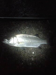 合間をぬって出撃現地到着は、AM1:30。途中の外気温は-1℃。まずは、風・波の影響を予測していたポイントへあれ? 風・波ともに微妙数か所回ったが反応なし。んで、実績ポイントで2発出たが痛恨のバラシ。まあこんなもんです。まだまだ修業が足りません。次ののポイントでは先行者が先にポイントに向かって歩いて行ったけど気になる場所なんで準備して向かうと明らかにライトと玉網と小さいクーラーBoxだけもった怪しい人を発見。さっきの先行者でした。あいさつしようと思ったが間違いなく密漁者。エビはだめですよと密漁になりますよと声を掛けたら ヤドカリ獲っているだと!!! んじゃ警察呼びますよって言ったら。呼んでもらって構わないだと。釣りもしたいので密漁オヤジを置いてポイント確認。10分か15分くらいで見切り来た道を戻ると、密漁オヤジは、逃げていました。いい年して恥ずかしい。アングラーにとっては、いい迷惑。夜釣り禁止の原因の一つです。車のナンバー写メ獲る前に逃げられたのが残念。また移動するもさっぱりだめ。んで朝に備えて大きく移動。砂物狙い。・・・・反応なし。ちょっと移動して岩礁帯に入り50cmくらいのヒラをかけるも鰓洗いでフックアウト。うねりのキツイなか思うようにポジショニング出来ていませんでした。残念。で結局徹夜で お・で・こ。朝寝して午後になり、ひと風呂浴びてから遊んでくれたのはこいつこのサイズを3本キャッチ&リリースしておでこをごまかしました。夕方行は、きつけのお店でチキンカレーを食べながらお店のD-35ハカランダをお借りして御近所でのイベント伴奏の練習をさせていただきました。マスターありがとうございます。いいギターですね。来週ライブも楽しみです。タイミング合えば見たいと思います。んで、満潮までまだ早いけどすっかり暗くなったので修業再開。しばらくは、飽きない程度にショートバイトがあり粘るもバラシ。やけに渋い。ちょっと移動してうねりが正面から入るが流れに変化のある場所にてでたー。でもサイズが?暗いなかで波しぶきと海の湯気でメガネが・・・。やたらに寄ってこない。 うねりに合わせて寄せようとポジショニングを変えリールを巻くと一気にドラグを出され!!! おいおいでかいのか?弱らないなーマルか? 何とか距離が縮まりライトオン。 ん? まあまあのサイズのヒラかな?慎重に寄せにかかるが強い。しぶとい。うねりを利用して魚の頭の向きをどうにか岸に向かせ低い岩の上にずり上げ成功。あぶねー、フック1本しか掛ってなかったじゃん。70位かなと思いましたが80UPでした。その後、何本か小ぶりサイズを掛けて移動。90UPを捜しにあちこち回るも撃沈。予定時間をオーバーしているので後ろ髪をひかれつつ撤収。まあ、とりあえず1本獲ったから良しとしましょう。海に感謝して深夜帰路へ。明け方無事帰宅。まだまだ未熟。反省し次回に繋げる作戦を考えます。師匠。メバルロットが無くて合流しませんでした。次回ヒラやりましょうね。さっ師走の修業のチャンスもわずか。90UPのGET出来るでしょうか・・・・?無理せず、がんばるぞー。