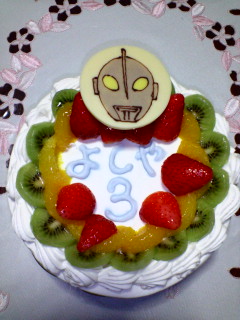 時が経つのは早いもので・・・ この4月8日(ハナマツリ)に我が愛息子も3歳児に! って誕生日からもうこんなに日にちが経ってる! It's a タイムゾーン! 取り乱してしまいました・・・ 毎年ケーキはオリジナルにしてましたが、 まだあまり分かっていない様なので、今年はフルーツが たっぷりでオイシそうなやつを・・・ こうして毎年簡単になっていくのだろうか? いやいや、そうではなくて単純にまだ味の方が分かるから きっとキャラクターよりは喜ぶのでは!? という判断から。(マヂデ) ビックリシューという大きくて絶品のシュークリームが 有名な「こうのとり」で注文。 一ヶ月前から予約して3本って言ってたのにロウソクが 入っていないというサプライズがあったがやはり美味し♪ (研修生さんがんばって~) ケーキ食べるっ♪ と嬉しそうな愛息子(3) それを見ながら、 いつかケーキよりプレゼントと言い出すのだろうか・・・ 小遣いよこせとか、クソジジイとか言うのだろうか・・・ いやいや!そんなことはしない!させない!持ち込まない! モノより思ひ出!ア~イムダディ! また・・取り乱してしまいました・・・ とまぁ未来の可能性と無事に誕生日を迎えられたことに感慨を 禁じえないのでした。 (オチナイヨ)