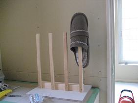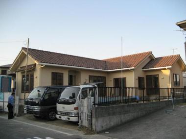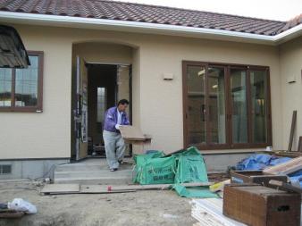 監督さんから「外壁の吹き付けが終わり、内部にはシューズボックスなど設備が入りました」と連絡を頂きました。2週間ぶりの11/24(土)、お父さんが臨時の仕事から戻ってから現場に向かいました。棟梁さんとお手伝いの大工さん(上棟時にも)のお2人でお仕事されていました。外部は壁の吹き付けがきれいにされて雨樋も付いて、足場と養生シートがはずされていました。壁の色は少し濃く感じられましたがイメージ通りでした。南欧風なので浮いてしまうのではと少し心配でしたが、ご近所にも溶け込めているように感じ嬉しいです。