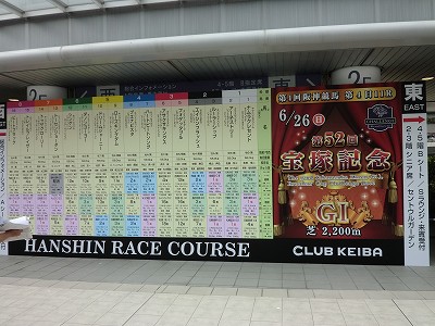 宝塚記念観戦記 予想結果直前には降りましたが、発走時は蒸し暑くこの時期らしい天候にスタートでドリジャニがいつものように出遅れ生粋の逃げ馬不在で前半1000mはS~Mペースになりそうという大方の予想とは違い、内の馬の激しい先手争いで57秒台のHペースで流れる。4コーナー手前で早くも逃げていた1 ナムラクレセントが脱落し、追い込み馬台頭かと思いましたが、好位にいた〇 2 アーネストリーが力強く抜け出し2着争いに。△ 4 エイシンフラッシュが懸命に粘るところを◎ 8 ブエナビスタが大外から怒涛の追い込みでなんとか捕らえハナ差2着を確保しました。 またもや1番人気で勝てませんでしたが、さすが国内3着以下なしの超堅実馬頼りになります。 おまけ 日本レコードタイ 2.10.11着 〇 2 アーネストリー R 2.10.12着 ◎ 8 ブエナビスタ3着 △ 4 エーシンフラッシュ4着 9 ローズキングダム5着 ▲ 3 ルーラーシップ やっと3連複GET〇―◎―△3連複 2020円×000円=000円也~は ヒ・ミ・ツ だよ久しぶり儲けました。 宝塚記念優勝アーネストリー号 佐藤 哲三騎手 表彰式 WIN5結果レース中山10R阪神10R函館11R中山11R阪神11R勝馬11ダイワシークレット5マゼラン8エンシャントアーツ1フィフスペトル2アーネストリー単勝人気8番人気 4番人気 11番人気 1番人気 6番人気 残り票数398,687票34,208票467票71票3票的中馬番11-5-8-1-2払戻金200,000,000円的中票数3票 阪神10R マゼラン 〇中山 11R フィフスぺトル 〇フィフスぺトル出資者のS君おめでとう2レースのみ的中ではずれ配当は2億円次回キャリーオーバー発生467,188,320円来週からは夏競馬が開催されます。 クリックしてね にほんブログ村