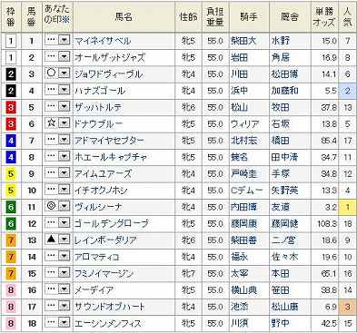 東京11R 京王杯SC GII芝1400m 発走15:454歳上オープン (国際) (指定) 別定 18頭 昨日はあんなこんなでバタバタしてましたが、遠いとこなのに21時には戻ってこれました。日本の交通網は発展してるなとつくづく感じました。ありがたや~しかし長時間の移動で腰が重い さぁ今日は気を取り直して競馬で一発大穴狙い ◎ 4 ガルボムラの多いタイプだがまた忘れた頃に一発が。 〇 1 インプレスウィナー府中1400mは好条件。 ▲ 8 レッドスパーダ56kgでそろそろ変わり頃か。 ☆ 11 シルポート好走には条件があるが、中途半端な距離の時も警戒。 ヒモ△は 3 トライアンフマーチ 斤量よく 5 トウケイヘイロー 馬場次第6 パドトロワ 叩きと思うが地力ある12 フィフスペトル 大きくは負けていない13 タイキパーシヴァル ハナ主張14 サダムパテック メンバーレベルを考慮して15 ダイワマッジョーレ 地力上位17 テイエムオオタカ 粘り強く 買い目 本線 3連複 BOX (1.4.8.11) 押さえ 3連複 2頭軸 (1.4)3.5.6.12.13.14.15.17(4.8)3.5.6.12.13.14.15.17 ぽちっとよろしくねにほんブログ村にほんブログ村