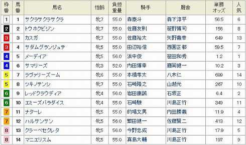 今日は七夕あっそうだ あれなんだ 福島では愛馬アソルータが中1週で出走します。 前走東京ではSペースの外を回らされなし崩しに脚を使い、0.8秒差ながら10着でした。 次走は新潟かと思ってましたが、調子はこの馬なりにいいようで間隔を詰めての出走です。 福島9R織姫賞3歳上500万下 牝馬 (特指) 定量 15頭 芝2000m 14:35 久しぶりの特別戦でメンバーを見るとやはり降級馬が何頭かいます。しかも1000万特別で勝ち負けしているからこれはやっかいだ。 今の福島は逃げた馬が簡単には止まらないので、逃げというのは大前提だが、先行グループの中途半端な位置にいたらなぜか伸びない。 ここは展開待ちで思い切って最後方待機なんていう策もありかなと思うし、どう乗るのか注目です。いずれにしても極端なレースをしてほしいですね。 騎手は初騎乗 石橋脩騎手です。 いいとこ見せてほしいです。願いは勝利のみ ぽちっとよろしくね にほんブログ村