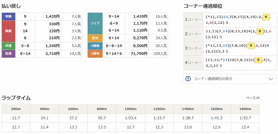 新潟9R 咲花特別 ダート1800m(牝) 14:05