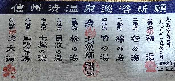 一番湯から結願湯(九番湯)までの9つの湯を巡り、最後に薬師如来に満願を報告してご利益を祈願する外湯巡り が、現在でもこの 渋温泉の名物 となっています。