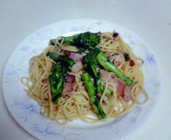 某所で菜花の美味しい食べ方を教えて頂いたからパスタに応用してみました。