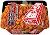 「いっぺん食べたら、やめられない。」「マヨネーズ付」「※ 唐辛子のイラストはイメージです。」「夜店の焼きそばが辛くてなぜおいしい!」「※ 小さなお子様や辛味が苦手な方は十分にご注意ください。」原材料名をみると、油揚げめんは小麦粉 植物油脂 食塩、ソースはマヨネーズ 糖類 ラード 香味油 しょうゆ 食塩 ソース たん白加水分解物 香辛料 オニオンペースト しょうゆもろみ ビーフエキス 香味調味料、かやくはキャベツ 香辛料 香味調味料 ローストオニオン アオサ 食塩、調味料(アミノ酸等) かんすい 炭酸カルシウム カラメル色素 カロチノイド色素 乳化剤 酸味料 酸化防止剤(ビタミンE) 甘味料(スクラロース) 香辛料抽出物 香料 炭酸マグネシウム 増粘多糖類 ビタミンB2 ビタミンB1(原材料の一部に乳成分 鶏肉 豚肉 りんごを含む)熱湯 3分、ソース マヨネーズ ふりかけをかけてできあがり。やや赤みがかったソースにも辛みがあるの思いますが、やはり辛さはふりかけからでしょう。ここのところ「辛さ x倍」となっているカラムーチョばかり食べていて、普通のカラムーチョの辛さがどのくらいか、わからないのですが…ラーメンだったらばピリ辛くらいでしょうか…。辛さをウリとするのであれば、油が多く、甘みを増すマヨネーズは要らないと思うのですが…? 脂質を増やして健康上も…。品目全体エネルギー(kcal)547>ナトリウム(g)1.4食塩相当量(g)3.6品目g品目mgたん白質9.3ビタミンB10.71脂質26.9ビタミンB20.35炭水化物67.0カルシウム166(内容量 117g めん 90g)必要なお湯の目安量 550ml/希望小売価格 180円一平ちゃん夜店の焼そば カラムーチョホットチリ味(明星食品)