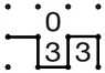 …左の「3」を囲む 4辺のうち、1辺については、隣りの「0」ゆえに線を引けないので、残った 3辺に線を引きます。全体でひとつの輪っかをつくることとなっており、かつ、線は交差させたり枝分かれさせたりしてはいけないので、1つの点につながる線は 0本か、2本です。したがって、向かって右の「3」の下には線を引けないので、残った 3辺に線を引きます。