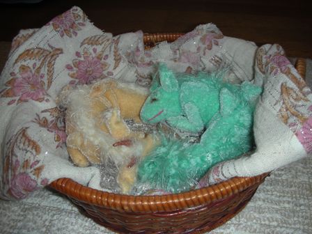 じゃ~ん♪ラブリ~な可愛いぬいぐるみさん♪♪が我が家にやってきてくれました^^ブログで見つけた可愛いぬいぐるみを手作りされている『2violet』さん本当に・・・どのぬいぐるみも温かくて息づかいが聞こえてきそうな作品ばかり…いいなぁ~いいなぁ~と眺めていたんですが♪♪思い切ってメールをしてみることにそれが彼是~4月くらいだったかな~^^激動に流れが来てる中(仕事…その後やっぱり家庭にも来てたんです…波が)『2violet』さんから丁寧なお返事が来て感動したのを覚えてますなんだか、温かい出会いって嬉しいです一歩踏み出すことの大切な感覚を思い出した~それからは、時々チビちゃんと「龍ちゃんのぬいぐるみ~♪どうしてるかな~羽?付いたかな~」「どんなコが来るかなぁ♪♪」「こんな感じ?(チビ作の落書き付き)」「どこに置く??片づけしとかないと~^^;」なんて会話を楽しんでました♪♪『いい時期が来たらきっと来てくれるんだよ☆』そんな事をいいながらそして…9月に入りチビちゃんまた突然久々に「龍ちゃんまだかな~」「どこに置く~??」「もうそろそろ違う??」なんて話をしてきた^^そういえば~最近やっと落ち着いてきた様な♪「そうだね~いい時期が来たのかなぁ♪来てくれたらいいね~~(笑)」そしたら『2violet』さんからメールが来ました♪♪可愛い~きらきらしてる本当に素敵な空気が流れてます♪*9月初めから家庭の流れがいい感じに落ち着いてきてたんです♪ 小さな幸せをコツコツと積み上げる♪ ~をやっと、実感して感謝してた所^^ 大きなプレゼントがやって来ました「こっちに置く~っ」「こういうカゴがほしい~っ」「こんな感じがいい~っ」…等々相変わらず、注文が多いチビちゃん…結局これで落ち着いた(笑)カゴの中にサザレ水晶を入れて、アジアン風の布をひいて…←ココまでが長かった^^~出来上がりやっぱり自分のお部屋(机)に置くのががいいんだって♪みどり色が『みんと』オレンジ色が『きら』二匹の龍ちゃん…一匹ずつ写そうかな~と思ったんですが~どうも離れたくないらしい←感じがするだけなので、2匹セットの写真のみ♪可愛いお友達がやってきてチビちゃん大喜びの日々でした『2violet』素敵な作品がいっぱいです手作りのぬいぐるみならでは温かさと生命力を感じる不思議なぬいぐるみ達…ホント素敵です…http://plaza.rakuten.co.jp/greenandred2/ 『2violet』さんブログ