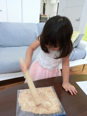 台風、皆様のところは丈夫だったでしょうか??週末はここ沖縄も台風の影響で荒れ模様。そんな日曜日の朝、夫から「公園にも行けないから、お昼はお菓子作りして、夜は手作り餃子パーティをしよう ♪∩(´∀`)∩」という何とも女子力の高い提案。ちょっと面倒くさい。。。せめてどっちか1つでいいんじゃ。。。 (ー∀ー;)と思うのは私だけで、娘達は大張り切り♪材料の買い出しへ行きまして、先日、NHKの子ども向け番組で紹介していたパンプキンチーズケーキを作ることに。録画していた番組を何度も一時停止しながら作りました(笑)次女(2歳)も頑張りました^^ちなみに我が家の娘達、休日は無駄にドレスを着ています(^∀^;)。。。好きにさせてます(笑)子ども向け番組で紹介されているとあって、分量も「薄力粉 大さじ2杯」など比較的大雑把♡「きちんと計る」「ふるう」などを億劫に感じてしまう(お菓子作りが向かない)私にとっては有り難いレシピでした♪かぼちゃはレンチン♪材料を順にミキサーで混ぜるだけ♪衛生的にどうかとは思いますが、次女が参加しやすいようにと考えるとミキサーは直置きで作業(^∀^;)ニトリのミキサーが活躍♪ミキサーで混ぜた材料を流し込んでオーブンで焼いている間、娘達は楽しくパンプキンダンス♪♪私のかなり大雑把な計量だったのでどうなることかと思っていたのですが、無事焼き上がって3時のおやつに美味しくいただきました♡みんなで「これは合格点だろう」ということになり、いつもお世話になっているご近所さんへお裾分け♪そして、夜は餃子作り!!次女はというと、「エイサーで応援するよね!!」とダイニングテーブルの周りをエイサードンドン(笑)「パーティーだからホットプレートでしょ!?」ということで、ホットプレートで大量に焼きました♪餃子の形が悪いのはご愛嬌!(笑)洗い物の量がすごかったけど(^∀^;)夫の女子力高めの提案のお陰で娘達にとっては楽しい台風な休日になったようです^^最後までお付き合いいただきありがとうございました☆☆読んだよ〜のしるしに応援の1クリックいただけると嬉しいです (*´∀`*)にほんブログ村