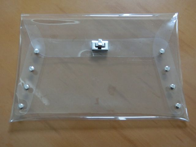 このビニールポーチ、プレゼントでいただいたTシャツが入っていたんですが、丈夫でシンプル!