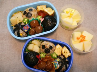 こんばんは!昨日の日曜日は近くに住んでいる友達の家に1月に産まれた赤ちゃんに会いに行ってきました~大人4人と子ども6人の賑やかな集まりでした。その中の友達ひとりは夏に出産予定でその頃はもっと賑やかになりそうそれにしても男の子って本当に元気だよね!!!まあうちの子たちを筆頭にですが・・・ママ達は久しぶりに楽しい話に花を咲かせました♪次の集まりが楽しみです。さてタイトルにある年中さん最後のお弁当。写真を載せるほどでもないと思ったんですが記念に。長男君の幼稚園は基本給食。でも月に数回手作りお弁当持参の日があって先日の年中さん最後の遠足が手作りお弁当日でした。最近長男君お気に入り「隠れミッキー弁当」。↑ミッキー隠れてないけどねのりを丸く切っておにぎりに貼るだけだから簡単!これだけでも長男君は大喜びしてくれま~す。そろそろ新しいお弁当箱に買い替え時?ママ好み。長男君好み。これ面白い形ですごく喜びそう。使い難そうだけど、どうだろう?このお弁当箱かわいい~~♪ディズニーとShinzi Katohのコラボレーション・・・調べてみよう。