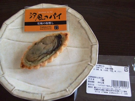 前のブログや新年会に参加された皆さんは御存じと思いますが汐風のパイ牡蛎の桜燻し昨日ゆっくり試食しました(^^♪一個しか頂け無かったので私だけ頂くことになってしまってパイの包装の封を切ったら、ふわぁっと汐の香りがした…そして桜チップの燻した香りが…だんだんに混じって食欲を誘う♪パイというとついお菓子と考えがちだが、これは~一品料理といった感じでイメージした方が良いらしい!半分に切ったら、身はしっかりしていて肉厚のプリプリ♪火を通してこの大きさだから最初は大粒だったことでしょう!一口食べてみた!塩味の効いたキッシュを想像してみてください♪パイ生地とうまくマッチしていて美味しい(^^)お酒のつまみとして日本酒や焼酎・ワインも合いそうです♪一体いくらで販売されるのかな!?
