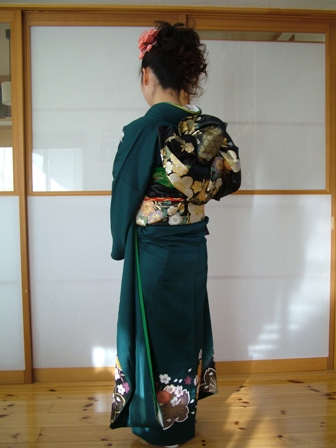 昨日一日どたばたと忙しい一日を過ごしました。朝7時20分に美容院にヘアーと着付け9時に写真スタジオに移動して写真撮影終わったと思ったら早めの昼食をし地下鉄駅まで送迎そして娘が楽しんでいる間に娘の神奈川へ帰る為の着替えの準備をして荷物までまとめて5時に仙台駅近くで着替えさせ脱いだ着物を持って娘を見送り自宅に帰り・・・夕食準備をし無事到着したのを確認して私の忙しい一日が終わり床についたのでした。これもうれしい悲鳴だと思っています(^^♪顔だけは駄目と許可でませんでしたので後姿ですがお披露目します(*^_^*)娘は懐かしい同級生と久しぶりに会ってとってもご機嫌でした!!でも今日からテストと言っていましたが・・・
