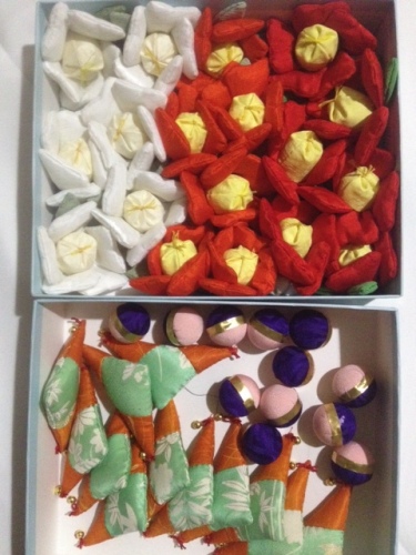 間に合うか心配です!!展示会が2月1日からあるのですが、傘飾り用のつるし雛が足りない!そうだ!前回のものを利用して輪飾りを作ったので、今回飾るつるし雛の本数が足りなくなった事すっかり忘れてた〜ブログも更新している場合ではないのですが、疲れてきて休憩と思いブログ更新を!!一本に椿袋三種類と三角と丸を二個になるようにして六本作らなければならない(~_~;)今は椿袋の途中!! 製作する時間も限られているので間に合うように頑張ります!!皆さま応援してくださいね(*^◯^*) ブログランキング参加しています。ポチッとしてね! にほんブログ村