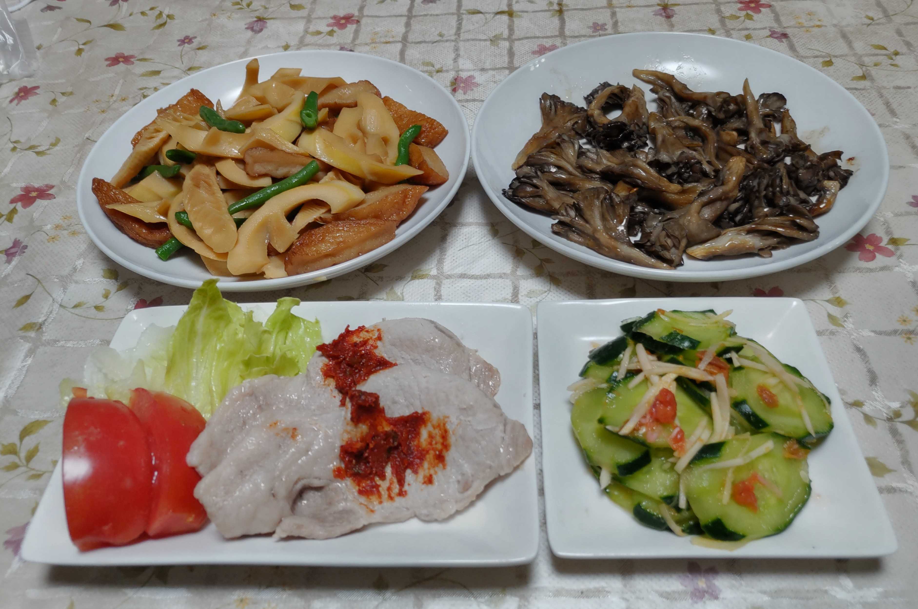 今日のごはん今日のごはんは麦豚の辛子味噌添え真竹の煮物舞茸のバター焼き漬物麦豚の辛子味噌添えは 上州麦豚を焼いて上州辛子味噌を付けて食べました。レタスとトマトを付け合わせました。真竹の煮物は 真竹とさつま揚げを一緒に煮て仕上げに茹でたインゲンを加えました。舞茸のバター焼きは 100日舞茸をバターを入れたフライパンに入れフタをして蒸し焼きにして醤油を少し垂らしました。漬物は キュウリと千切り生姜をまだ干してないもみ紫蘇を入れた梅漬けと合わせました。この日の食材の麦豚・辛子味噌・真竹・100日舞茸は旅行で群馬県に行った時に買ってきたものです。旅先で買ってきた食材でもう一度楽しさを味わうのも旅行の楽しみの1つです。6月26日は私の67回目のお誕生日です。誕生日当日は他の用事が入っていたので数日早く誕生日旅行に行って来ました。今年は車で2時間もかかららない伊香保温泉でゆっくりすることにしました。まず最初は 高速道路を降りて伊香保へ向かう途中で「小野池あじさい公園」の看板を見つけたので寄りました。駐車場も入園料も無料なんです。小さな山の中にある公園にたくさんの紫陽花が咲いていてとてもきれいでした。紫陽花を見ながら木陰の中を気持ちよく歩きました。たくさんの人が見に来られていました。紫陽花を見た後はランチです。伊香保にあるお蕎麦屋「いけや」さんおすすめの「三色天もり」をいただきました。真っ白な更科そば・茶そば・少し太めの田舎そばの三種もりです。それに海老の天ぷら2尾とナスの天ぷらとインゲンの天ぷら更科そばと茶そばは細くて見た目がとてもきれいでしたが少し柔らかめで 田舎そばが一番美味しかったです。カラッと揚がった天ぷらも美味しい 最後に運ばれてくる蕎麦湯もたっぷり頂きました。伊香保は水沢うどんが有名でうどん屋さんかお蕎麦屋さんのどちらで食べるか迷いましたがお蕎麦屋さんにしました。お蕎麦を食べた後は宿のチェックインまで時間があったので榛名湖までドライブしました。水面がキラキラ輝いていてきれいでした。湖畔の駐車場に大きなバイクが何台も並んでいてそれぞれのライダーが自分のバイクと榛名湖をバックに記念写真を撮っていました。榛名湖の隣にある榛名富士富士山に似て美しい姿の山です。榛名山ロープウェイで上る事にしました。ロープウェイで榛名富士の上に行くとこんな景色です。ロープウエイで上った所から更に上ると富士山神社があるらしいので上る事にしました。こんな木の階段を70段ほどあがります。紅白のきれいな富士山神社です。大きな鈴をならして「健康で幸せに暮らせますように」とお願いしてきました。帰宅してから調べたらここは「縁結びと安産」のパワースポットらしいです。客室から赤城山や谷川連峰などが見える高台にある宿にチェックインして大浴場の温泉にゆっくり浸かり 美味しいお料理と生ビールと冷酒二種を頂き満足でした。夕食後はフロントロビーで「ポップス尺八奏者 昌平」さんによる演奏会を楽しみました。誰もが知る昭和・平成の名曲が尺八の音色で癒されました。この昌平さんは北島三郎さんのバッグバンドで尺八を吹いていた方で 有名な「与作」のイントロのソロ尺八演奏も昌平さんがされていたそうです。曲のリクエストもできて楽しいひと時を過ごしました。2日目はランチに上州牛のステーキを食べる予定でしたが 予定していたその日は定休日でがっかりでした。取り敢えずランチは焼肉屋さんで上州牛を焼いて食べました。本当はステーキが良かったのにと言いながら…。伊香保にはグリーン牧場や美術館など色々な観光地もありますが何度か行っているのでそこには寄らず 道の駅などに寄って買い物をしながら一般道をのんびり帰る事にしました。「群馬まいたけセンター」では「100日まいたけ」と言う舞茸を購入しました。普通のスーパーに売られている舞茸の2倍の栽培時間をかけて栄養分を最大限に高めた舞茸らしいです。バター焼きの試食を頂きましたが促進剤を使わずにじっくり育てられた舞茸は味も歯ごたえも香りも良くてとても美味しかったです。たくさん買って切り分けて冷凍保存もしました。道の駅では真竹を見つけて購入しました。今年は食べられないと諦めていましたが食べる事ができて良かったです、帰宅後さっそく皮をむいて添付されていた糠で茹でてあく抜きしました。あちこち寄り道しながら水沢うどんや伊香保温泉まんじゅうなどの他にも色々なものをお土産に買って娘宅・息子宅にもお届けしました。梅雨明け前から本格的な猛暑が続き午前中と午後4時過ぎからの畑仕事 野菜の収穫や草取りで結構疲れ気味で今年の誕生日旅行の計画がなかなか進まなかったです。まず温泉宿と昼食だけ決めて後は何も決めずに行って来ました。温泉に何度も浸かり心も体もリフレッシュでき良い誕生日旅行になりました。今年も姉から誕生日のお祝いに「クラブハリエのバームク
