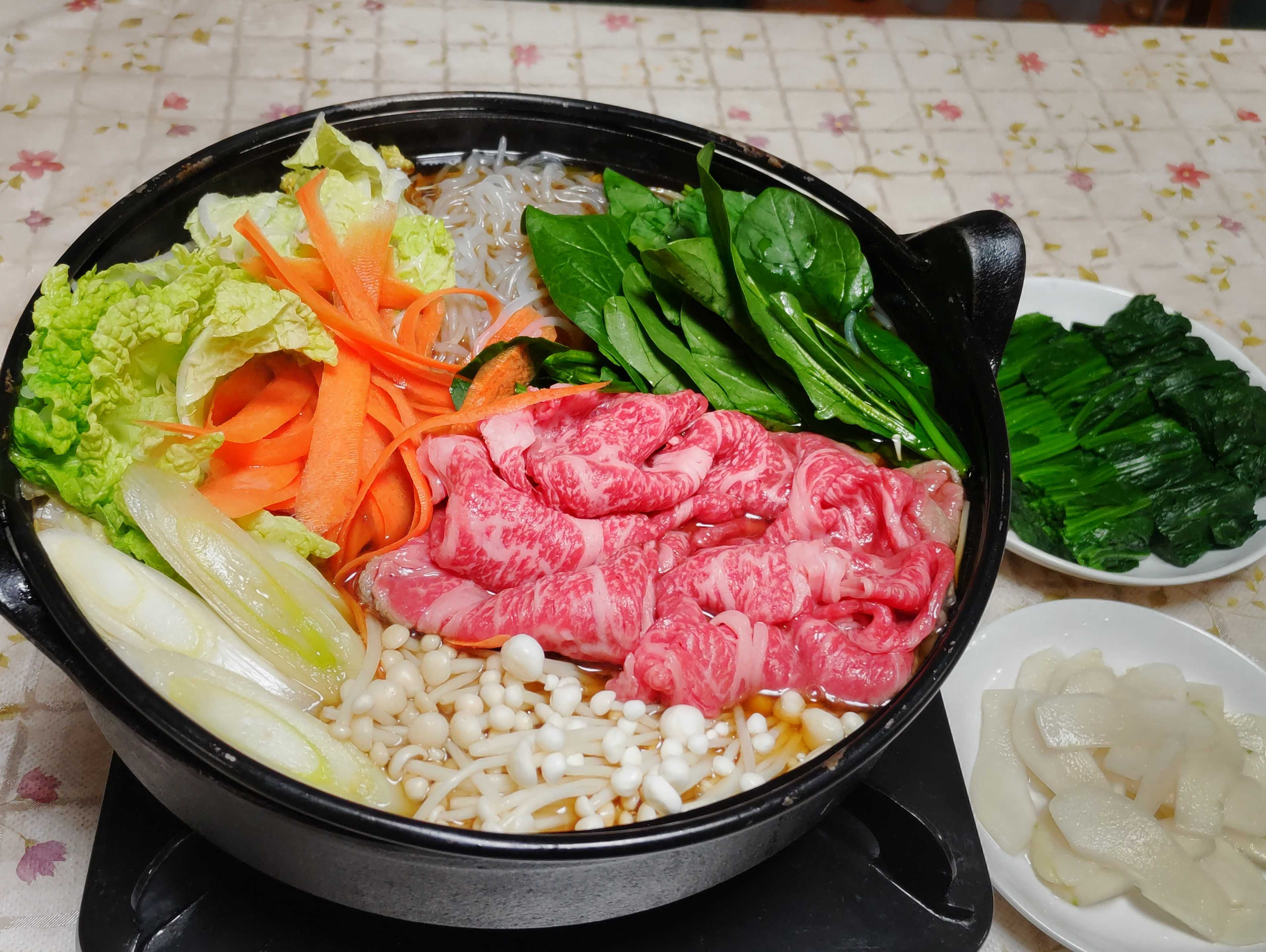 今日のごはん今日のごはんはすき焼ホウレン草のお浸し漬け物すき焼は 初収穫の白菜と牛肉・長ネギ・人参・エノキダケ・春菊の代わりにホウレン草・シラタキを入れて食べました。ホウレン草のお浸しは 初収穫のホウレン草を茹でてお浸しにしました。漬け物は ハヤトウリをスライスして塩で揉んだだけの即席漬け物です。初収穫の白菜で今季初のすき焼きを食べようと ちょっと良い和牛を買って来て2人で食べました。収穫したての白菜が柔らかくてとても美味しいです。残ったすき焼きは翌日の昼食に茹でたおうどんと野菜を追加して「すきうどん」として食べました。これが初収穫した白菜 ミニ白菜と言って小さめの白菜です。この白菜半分を2人ですき焼きでペロリと食べられる大きさです。青梗菜も立派に育ってくれました。柔らかくて厚みのある茎がジューシーで美味しいです。キャベツも巻き始めました。害虫の被害を受けて虫食いの株もあります。ブロッコリーも子どもの握りこぶし位の大きさになりました。見たら早く収穫して食べたくなりましたがもう少し我慢です。ブロッコリーの葉っぱも虫食いの所があります。