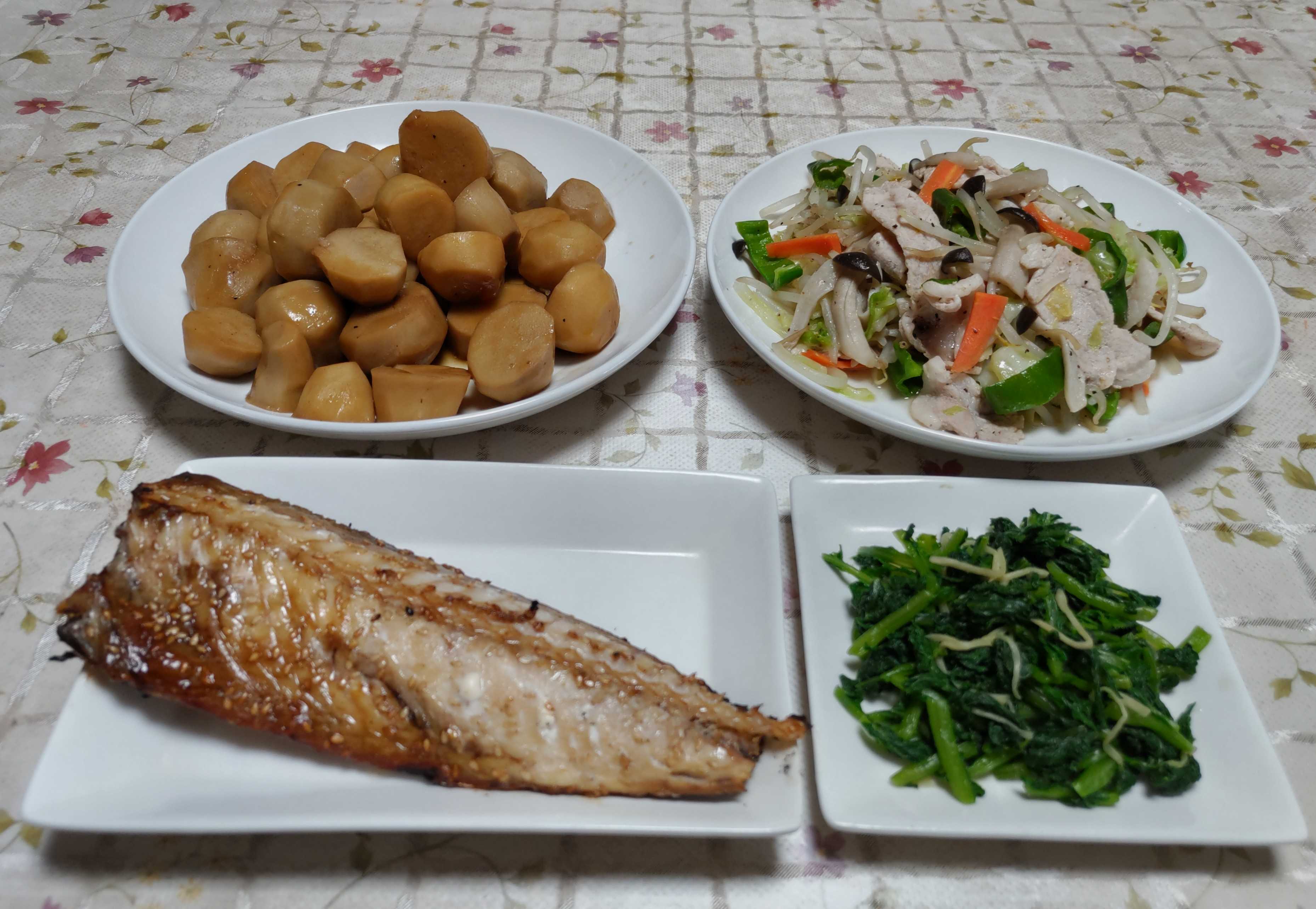 今日のごはん今日のごはんは文化サバ里芋の煮物肉野菜炒め漬け物文化サバは 文化サバをグリルで焼きました。里芋の煮物は 里芋の皮を剥いて砂糖・醤油・ミリン・酒で赤辛く煮付けました。肉野菜炒めは モヤシ・キャベツ・人参・シメジ・豚肉を一緒に炒めて塩コショウで味付けました。漬け物は 間引き大根の葉っぱをサッと湯通してから塩でもんで針生姜を加えた作り置きの漬物です。10月も後半になりサツマイモ掘りを始めました。(紅はるか)今年もまずまずの出来になりました。蒸かし芋で食べたり、天ぷらや大学芋にしたり、サツマイモご飯も作って食べました。どんな食べ方をしてもとても美味しいです。畑に植えたサニーレタスの残り苗を庭の丸いプランターに植えてあります。すくすく育って柔らかそうなので外葉から摘んで食べています。庭にあるとすぐに使えて便利です。隣の長方形のプランターには春菊の種を蒔きました。これも庭に置いてあるとすぐに使えて便利そうです。外に出ると良い香りが漂っています。良く見ると金木犀が咲き始めています。並んで植えてある銀木犀の花はまだ咲いていません。庭の金木犀・銀木犀の隣に植えてあるヤマボウシに可愛い実が付いています。花が咲いた後もこんな赤い実が楽しめます。