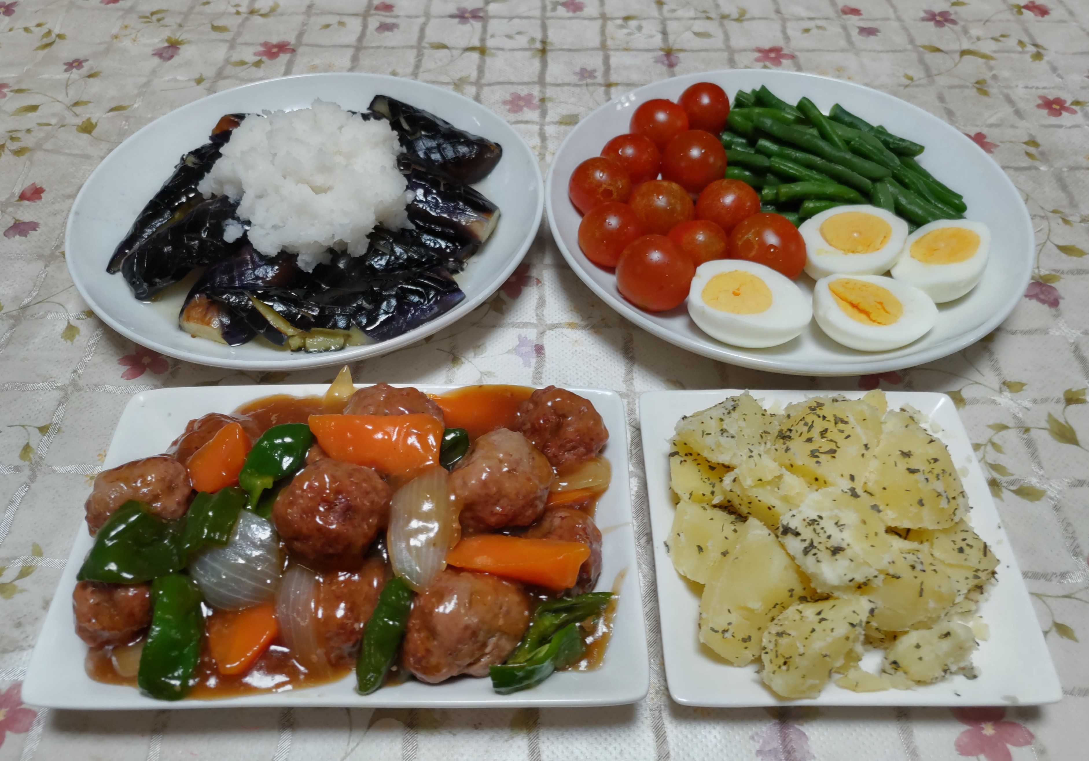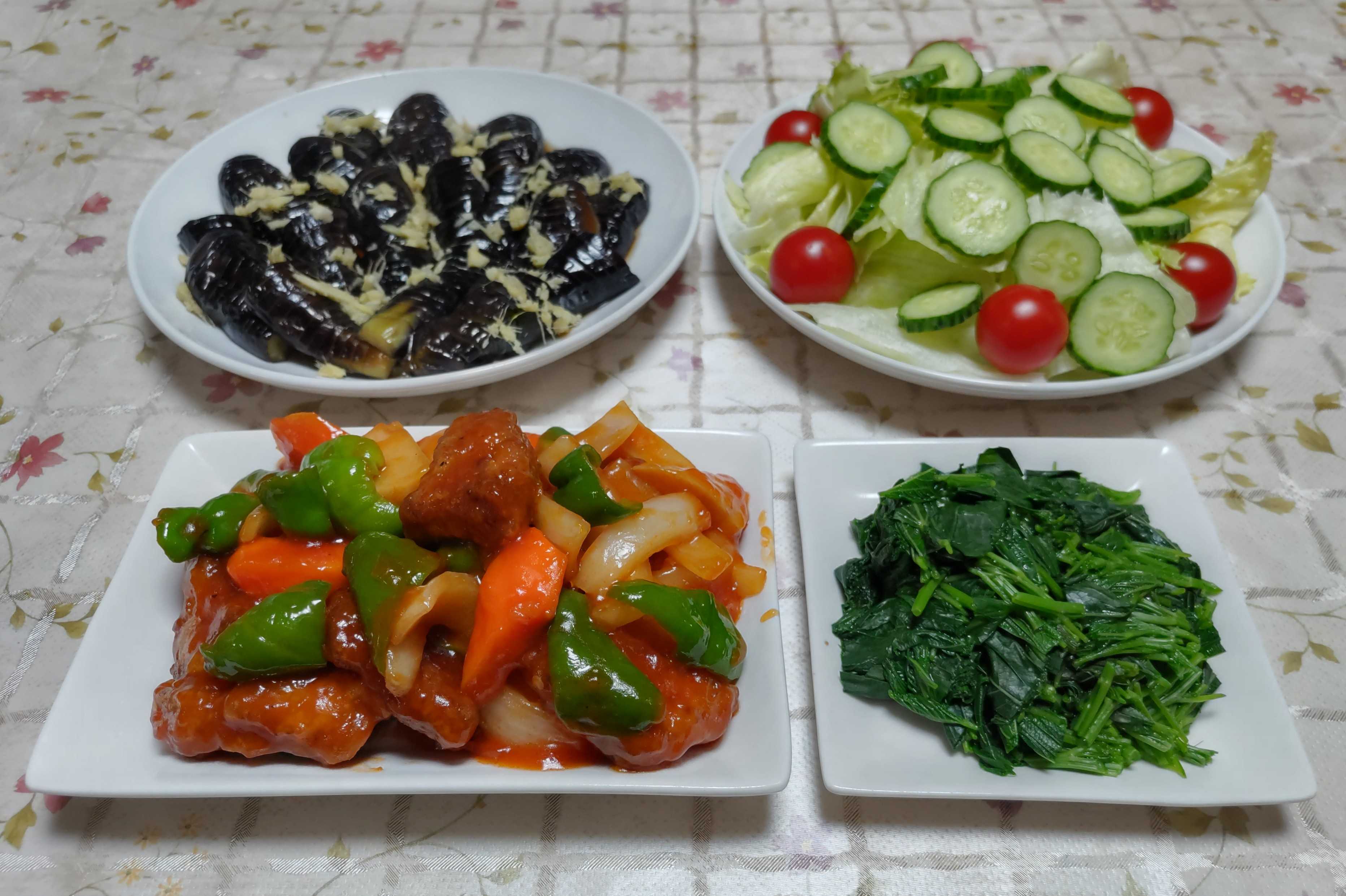 今日のごはん今日のごはん酢豚ナスの揚げびたしサラダモロヘイヤのお浸し酢豚は 豚肩ロースのブロック肉を唐揚げにして玉ねぎ・ピーマン・レンチンした人参を入れて酢豚にしました。ナスの揚げびたしは 切れ目を入れたナスを素揚げしてタレに漬け込み盛り付けてから生姜を散らしました。サラダは レタス・キュウリ・ミニトマトです。モロヘイヤのお浸しは モロヘイヤを茹でて鰹節を乗せて醤油を少しかけて食べました。採れたてのモロヘイヤは粘りが強く美味しいです。筍をたくさんもらえる春とピーマンが畑で採れる夏に酢豚や酢鶏が食べたくなります。夏休みの間 孫たちのおやつにフライドポテトやポテトチップを良く作っていました。畑で採れたジャガイモを薄くスライスして水に浸けてアク抜きをして 1枚ずつキッチンペーパーで水分を拭き取って乾かしておきます。1枚ずつ重ならないように油の中に入れて少し焦げ目が付く位に揚げていきます。誰か1人摘み食いをするとすると皆も摘み食いが始まります。揚げても揚げてもすぐになくなります。貴重なお米も残り少なくなったので新米を5キロだけ買いました。やはりお値段は高いですが新米にしました。いつも玄米で購入している米農家さんから今年はまだ連絡がありません。高い値段で買い取りにくる米屋さんがあるそうで早春の頃から譲ってもらえなくなりました。さて今年は新米の連絡が来るでしょうか?この5キロが食べ終わるまでに連絡が来るかと期待しながら待っている所です。