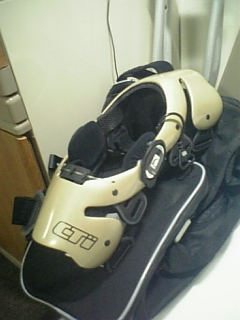 と同時に、膝を守るために、お風呂とベッドにいるとき以外は、写真の装具をつけています。