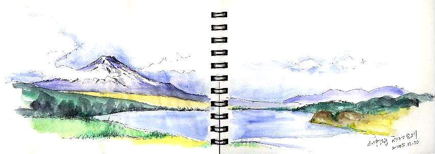 暮れに描いた冨士です見下ろす山中湖は水面が凍っていましたが 富士の山頂は例年より雪が少ないように思いました暖かいとは思いませんので 風が強くて吹き飛ばされてしまうのでしょうか?いづれにしろ気持ちよく描けた一枚ですお気に召しましたら人気blog投票をクリックして下さい