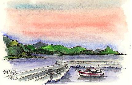 瀬戸内海で3番目に大きな島だそうです(因みに 1番が淡路島 2番が小豆島)島ですが周防大橋で簡単に渡れます夏などは海水浴客で大賑わいのようですが 今の時期は釣り客ぐらいで閑散としている海辺ですスケッチは宿のそばの港の堤防に座って描きました暮れなずむ空がほんのりと染まっていましたお気に召しましたら人気blog投票をクリックして下さい