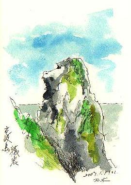 島に渡った日は 岳の辻という島一番の高台からの展望を楽しむ宿に入ってからは温泉-夕食-温泉-睡眠-温泉翌日は島の名所巡り先ずは「猿岩」見学島には野生猿は居ないそうだが「岩の猿」がいるスケッチのように横顔の猿だが 10度回ればただの岩だお気に召しましたら人気blog投票をクリックして下さい