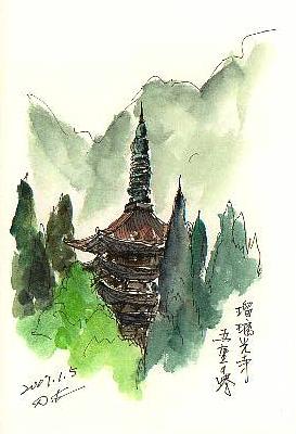 瑠璃光寺という名刹がある境内の池の縁に国宝の五重塔が建つ屋根は瓦ではなく檜皮(ひわだ)葺がいい全国でもあまり例を見ない(前日行った厳島神社の五重塔もそうだったか)珍しいといえば 2層目にだけ勾欄(テラスのような手摺)があること何故かは教えてくれませんでしたまさか 手を抜いたわけでもないでしょう手を抜いてるのは 私のスケッチのほうですね(イケネ!)お気に召しましたら人気blog投票をクリックして下さい