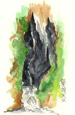 洞の見学は出入り口が2箇所あり 進む方向はどちらも選択可能高低差が数十メートルあるので下りのほうが楽スケッチは低い方で洞穴の入り口の顔をしている洞内から流れ出る水が小さな瀬をつくっている後から造った遊歩道にかかる屋根が無粋なので省略したお気に召しましたら人気blog投票をクリックして下さい
