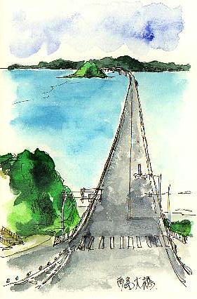 映画やドラマそして車のCMにと最近顔を出すようになり知れ渡るようになった島と橋です本州に架かるなが~い橋で海水浴の出来る島へ渡れる しかも無料とくれば人気が出るのも当然です個人的には「四日間の奇跡」での医療施設のあった場所であり灯台とか教会とか。。。映画のいろんな場面がよみがえったスケッチは橋の袂から島を望んだところ(平日の昼間 空いて貸切だった)お気に召しましたら人気blog投票をクリックして下さい