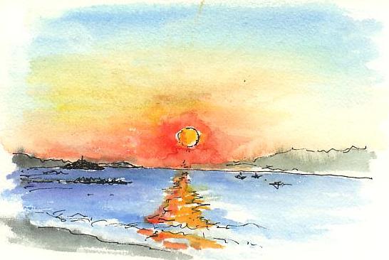 元日の初日は家の窓からだった日の出の前のあの絶妙な茜色の空が好きだ今日は水面に輝く旭を見たくて近くの浜辺に出掛けたそこは箱根駅伝の選手が走る134号線袖が浜風はないが空気が冷たいカジカム指先、鼻水をすすりながらのスケッチとなったお気に召しましたら人気blog投票をクリックして下さい