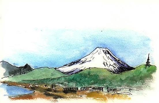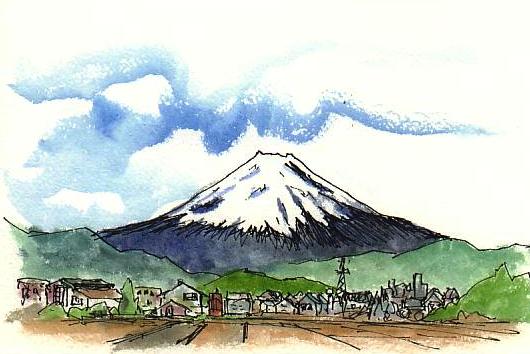 昇る旭日に背を向けて振り返る箱根連山の向こうに白峰の富士が見える実際より少し多めに裾野をスケッチ水筆が凍るほどの寒さだったお気に召しましたら人気blog投票をクリックして下さい