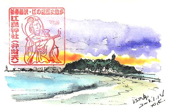 昨日は藤沢・江の島の七福神巡りをした最後は江の島神社の弁財天竜口寺から西浜に向かって坂を上ると江の島が視界にパット飛び込む何度も描いているが 描かずには入られない空も丁度茜色に染まり始めたお気に召しましたら人気blog投票をクリックして下さい