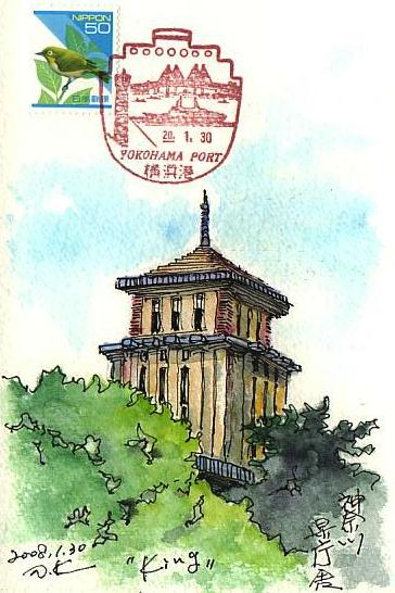 横浜の西洋風建物を描くスケッチしたのは、現在は神奈川県庁として活躍している風格ある「KING」です。この場所は江戸時代に運上所が設けられた行政の中心地でした。5階建ての建物の上に9階までの四角く大きな塔屋、さらに上部にはピラミッド状の屋根がついています。どっしりとした重厚な塔です。お気に召しましたら人気blog投票をクリックして下さい